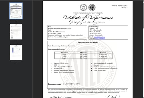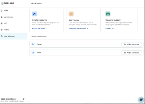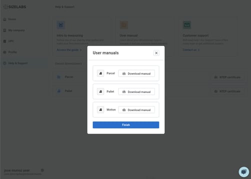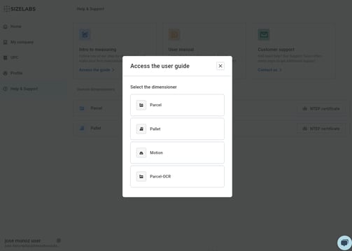 Allows you to download the official PDF manual for each type of dimensioner: Parcel, Pallet, and Motion.