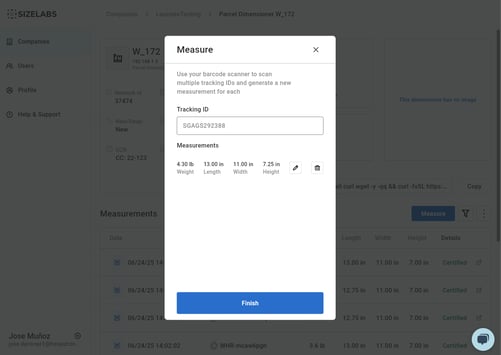 The most critical feature in this view is the ability to perform a new measurement directly from the dimensioner detail screen.